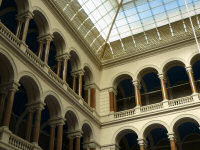 Startpunkt der Langen Nacht war die TU Berlin. Im Lichthof der Universität gab es am frühen Abend eine kleine Auftaktveranstaltung mit kurzen Ansprachen von Uni- und Industrievertretern. Direkt im Anschluß starteten dann auf der Straße des 17. Juni die Busse zu ihren Touren. Direkt am Bus erhielten wir unsere Besucherausweise.