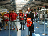 Wir gaben unsere Ausweise ab und erhielten dafür einen Beutel mit ein paar Gimmicks und Werbegeschenken als kleines Dankeschön für die Teilnahme an der Übung. Nachdem sich alle gestärkt und auch viele der offiziellen Teilnehmer ihre Verpflegung erhalten hatten, richteten der RUD-Leiter Christian Rothbart sowie ein Sprecher des Flughafens noch ein paar abschließende Worte an uns.