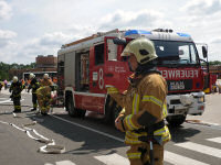 Wir wurden ausdrücklich dazu ermuntert, alle möglichen Knöpfe wie z.B. Brandmelder auch zu benutzen, dazu wären sie schließlich da. Selbst ein Notruf der 112 wurde uns nahegelegt; wir sollten dann aber unbedingt dazusagen, daß es sich nur um eine Übung handelt, um den operativen Betrieb der Berliner Feuerwehr nicht zu sehr zu stören.